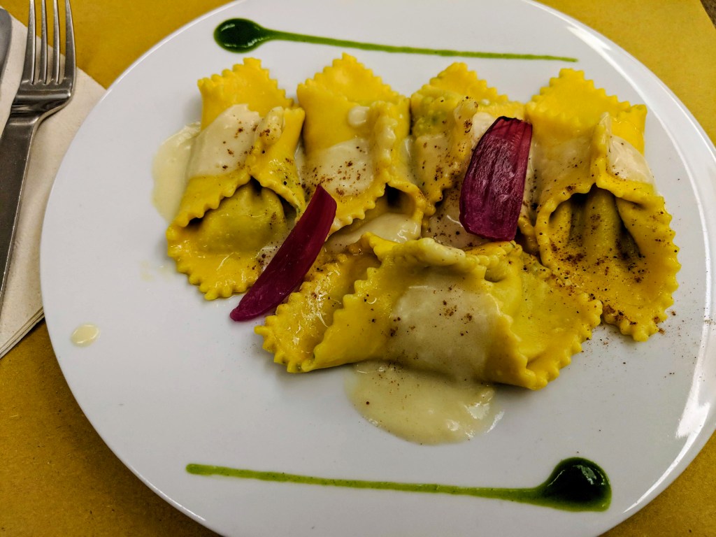 A bartender came over and gestured at my empty glass. “Più vino, signora?” Then more hesitantly – “Did I notice you talking to yourself?”