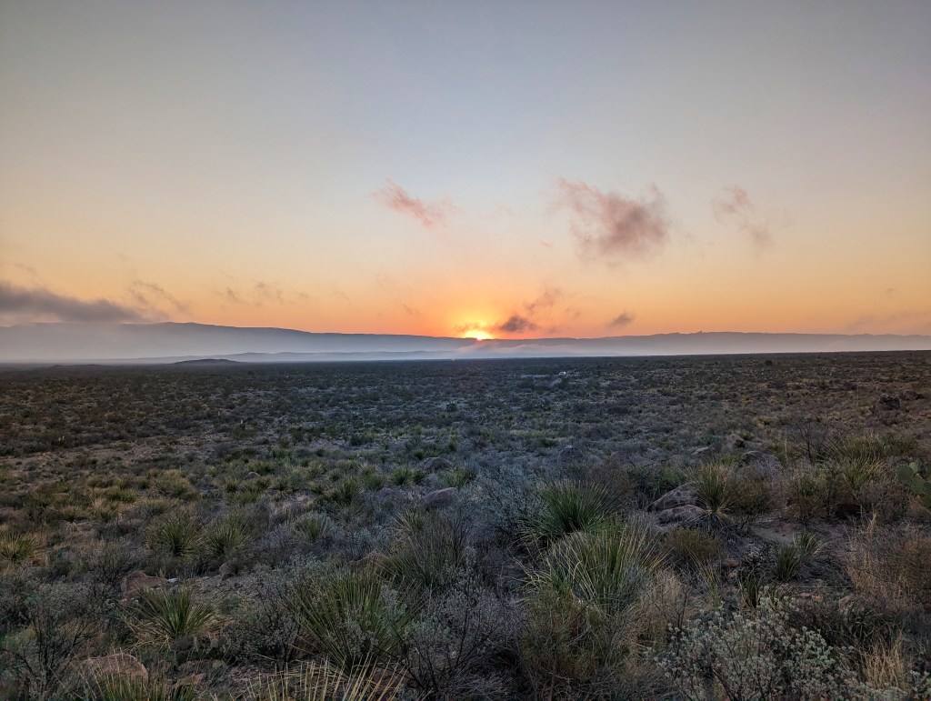 Mesquite and juniper appeared out of the gloom as day broke, joined by piñon and madrone. A break in the foliage allowed him to enjoy a view down into the valley he had just left.