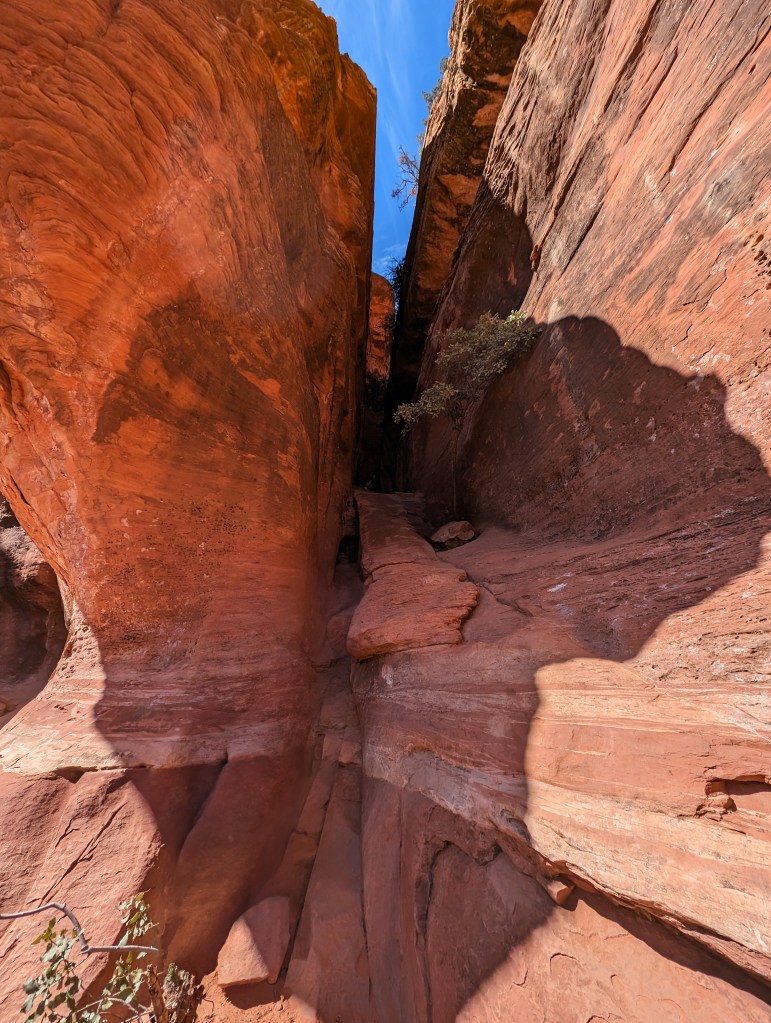 For a moment she was alone. She sat deep in the crevasse, enjoying the solitude and the contrast of adjacent shadows against bright stone and sky. It was here where he first said “I love you,” whispered in her ear.
